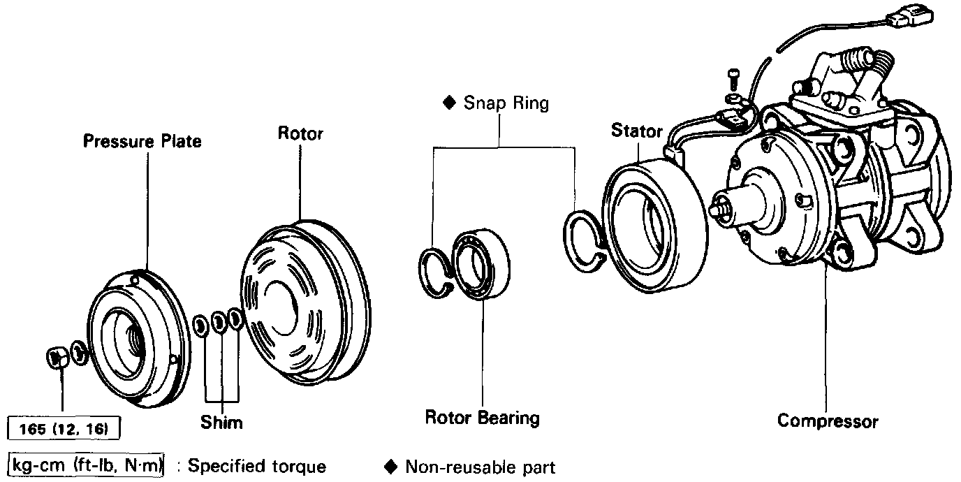 8. Adjust the clearance between the pressure plate and rotor by adding or removing shims on the compressor shaft.