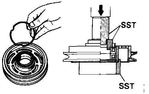 4. Using the SST(07114-84020), install the new snap ring.