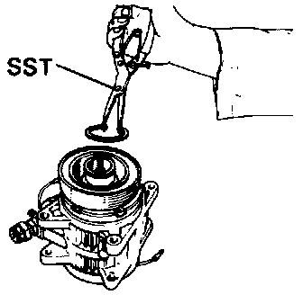 7. Using the SST(07114-84020), remove the snap ring and the stator.