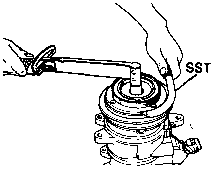 1. Using the SST(07110-77011) and a socket, remove the shaft nut.