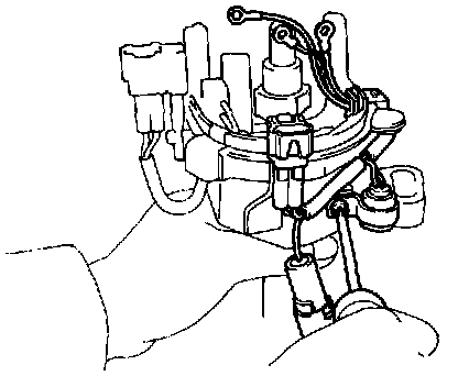 d. Insert distributor, aligning the center of the flange with that of bolt hole on the cylinder head.
