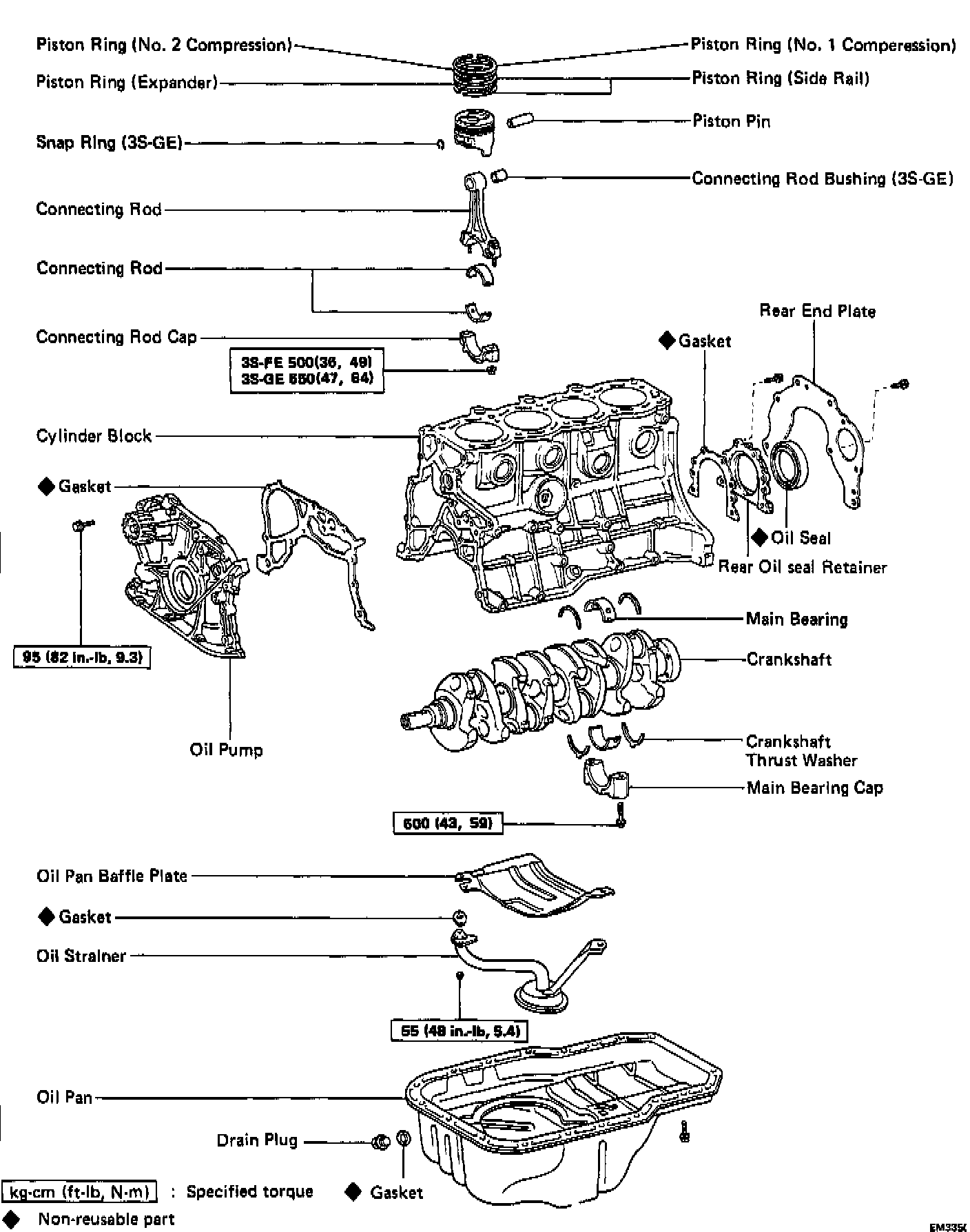 Lower Engine Torque Values 3S-GE/3S-FE: