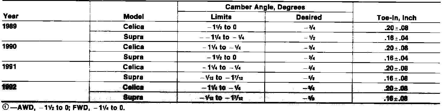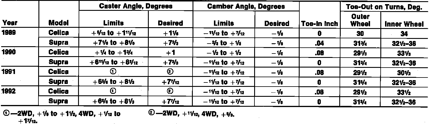 Front Wheel Alignment Specifications: