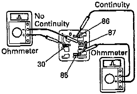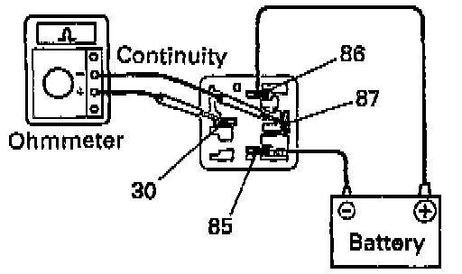 - Using an ohmmeter, check that there is continue between terminals 87 and 30.