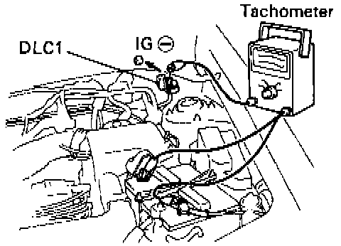 2. With a tachometer connected to the system, connect the tester probe of the tachometer to terminal IGG of the data link connector 1.