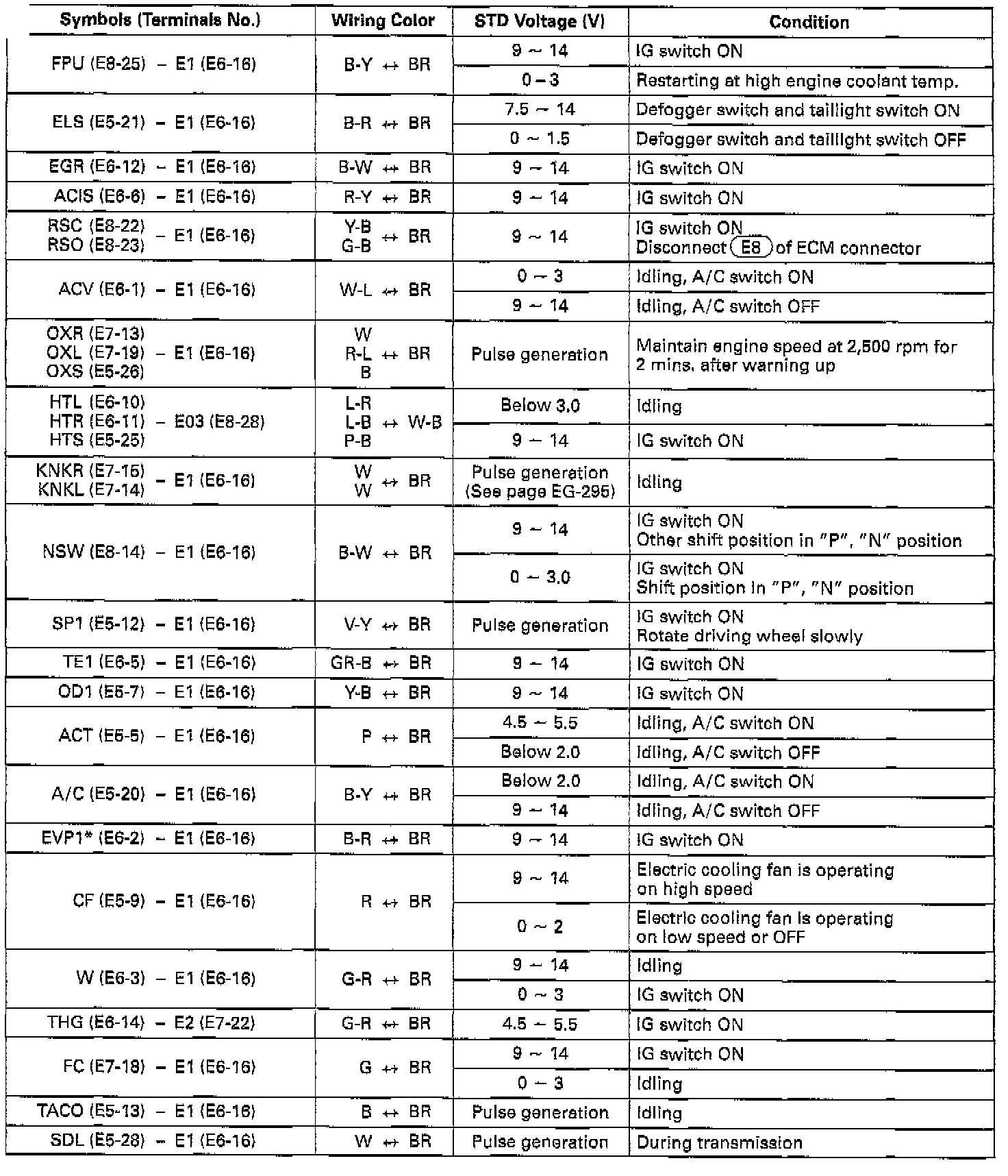 Standard Value Of ECM Terminals (Part 2 Of 2):