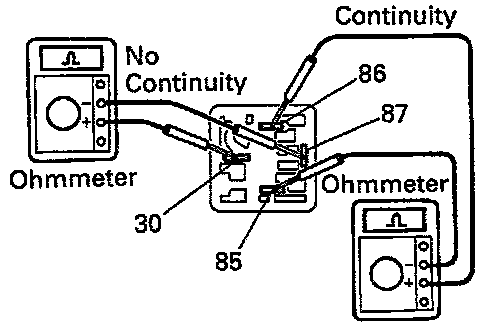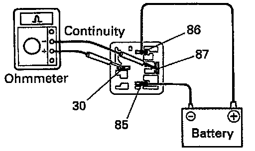 - Using an ohmmeter, check that there is continuity between terminals 87 and 30.