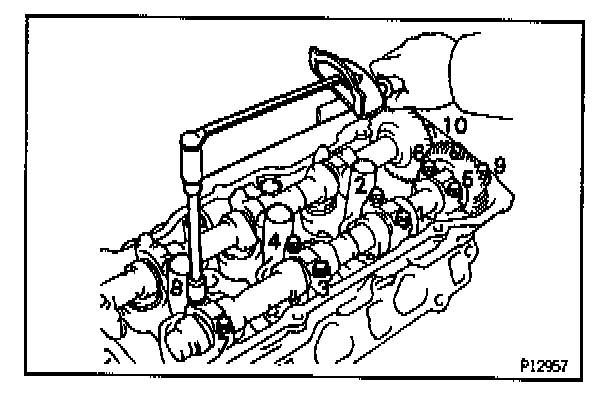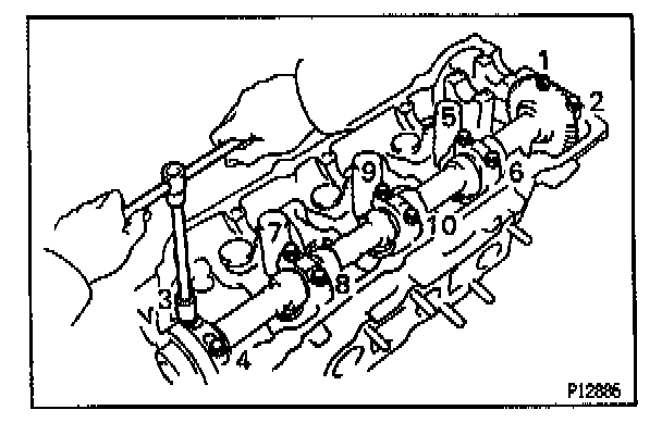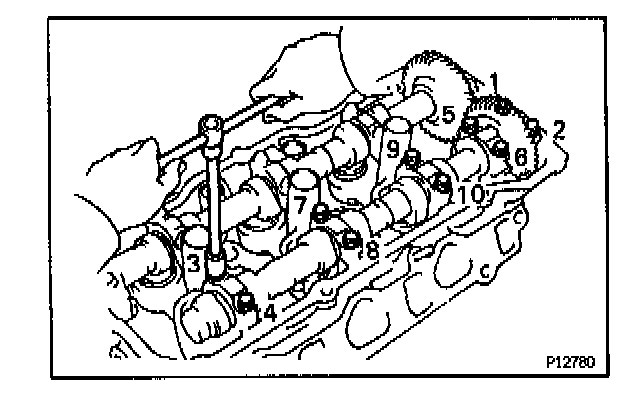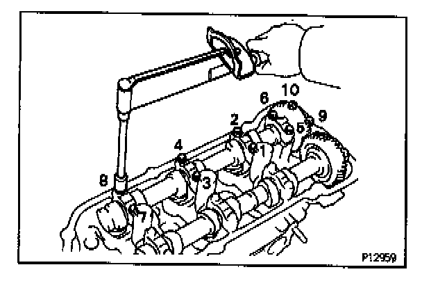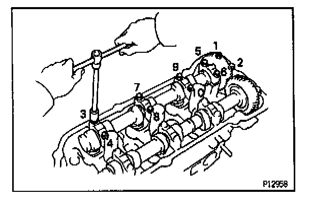 LH Cylinder Head Exhaust Camshaft Bearing Cap Bolt Removal Sequence:
