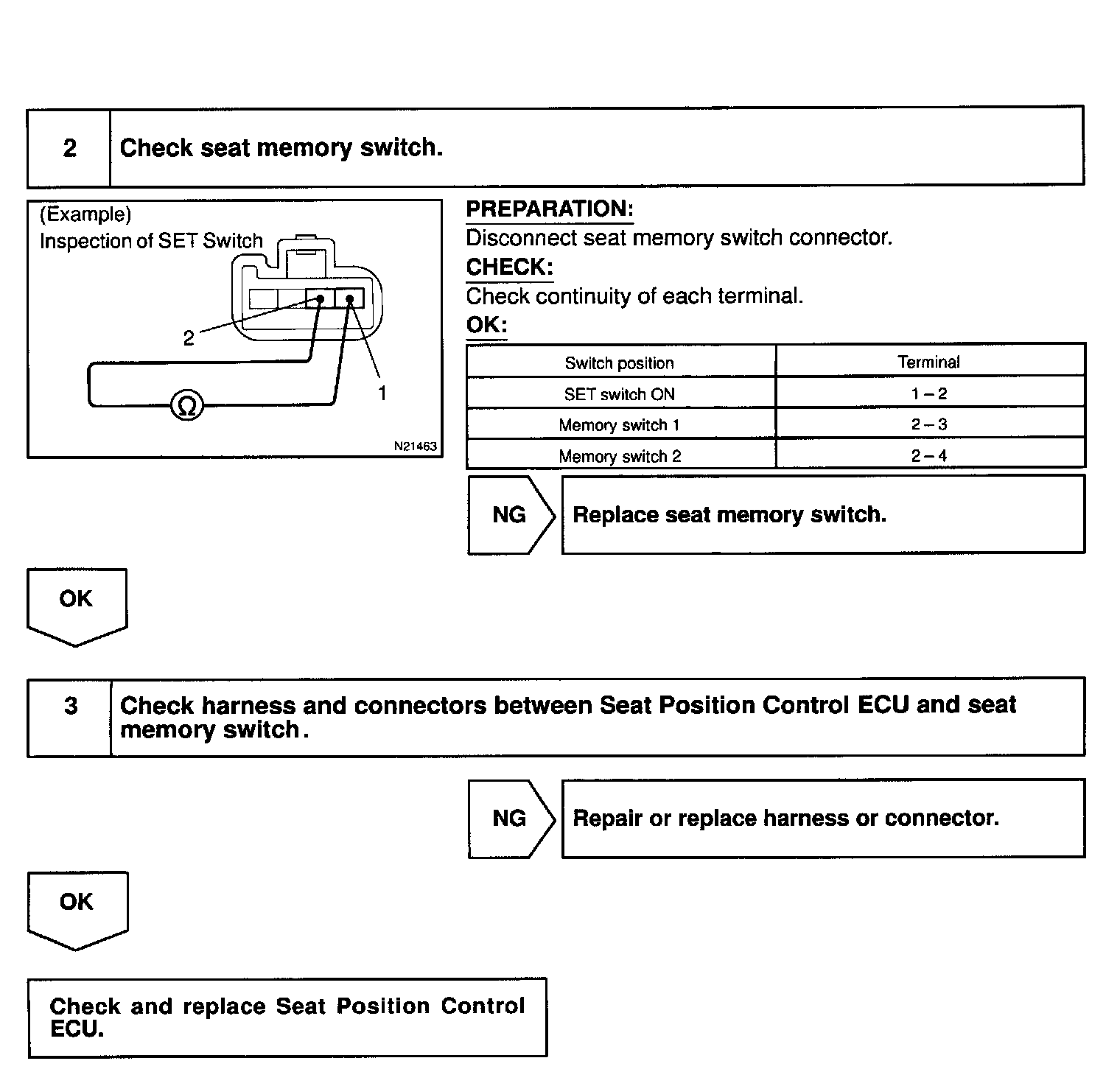 Memory Positioning Switch: Testing and Inspection