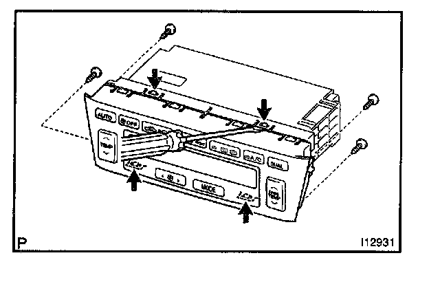 c. Unlock the connector's lock and pull out the flat harness from the A/C control panel.