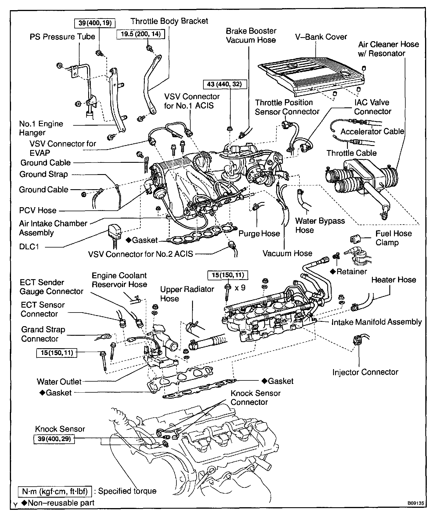 7. REINSTALL WATER OUTLET AND INTAKE MANIFOLD ASSEMBLY