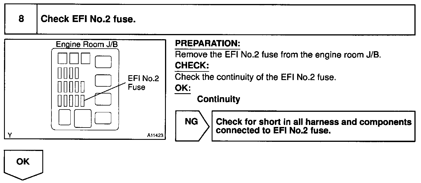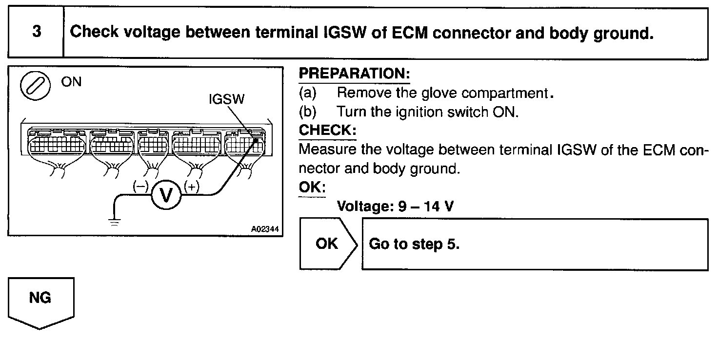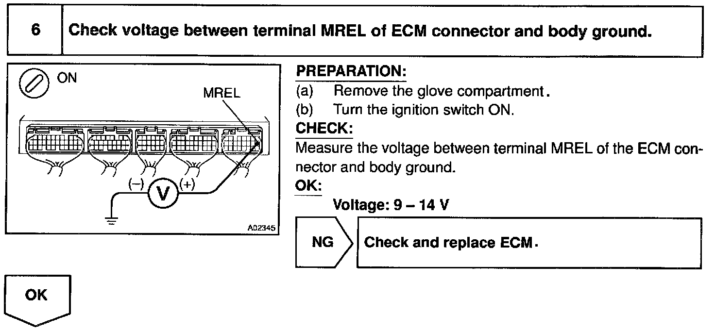 This signal causes current to flow to the coil, closing the contacts of the EFI main relay and supplying power to terminal +B of the ECM.