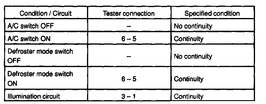 If continuity is not as specified, replace the A/C switch