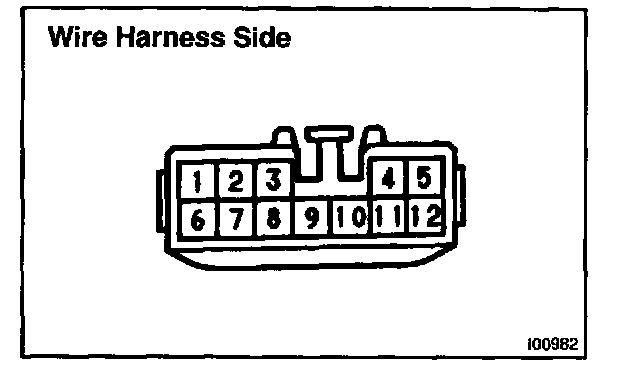 c. Connect the connector to amplifier and inspect wire harness side connector from the back side, as shown in the chart below.