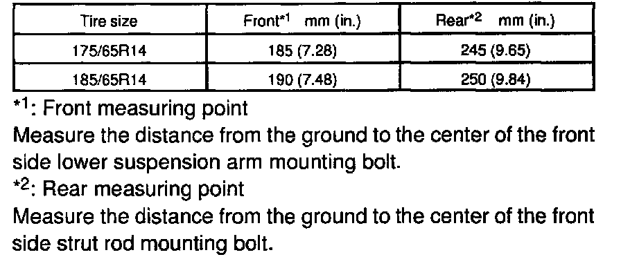 NOTICE: Before inspecting the wheel alignment, adjust the vehicle height to the specified value. If the vehicle height is not the specified value, try to adjust it by pushing down on or lifting the body.