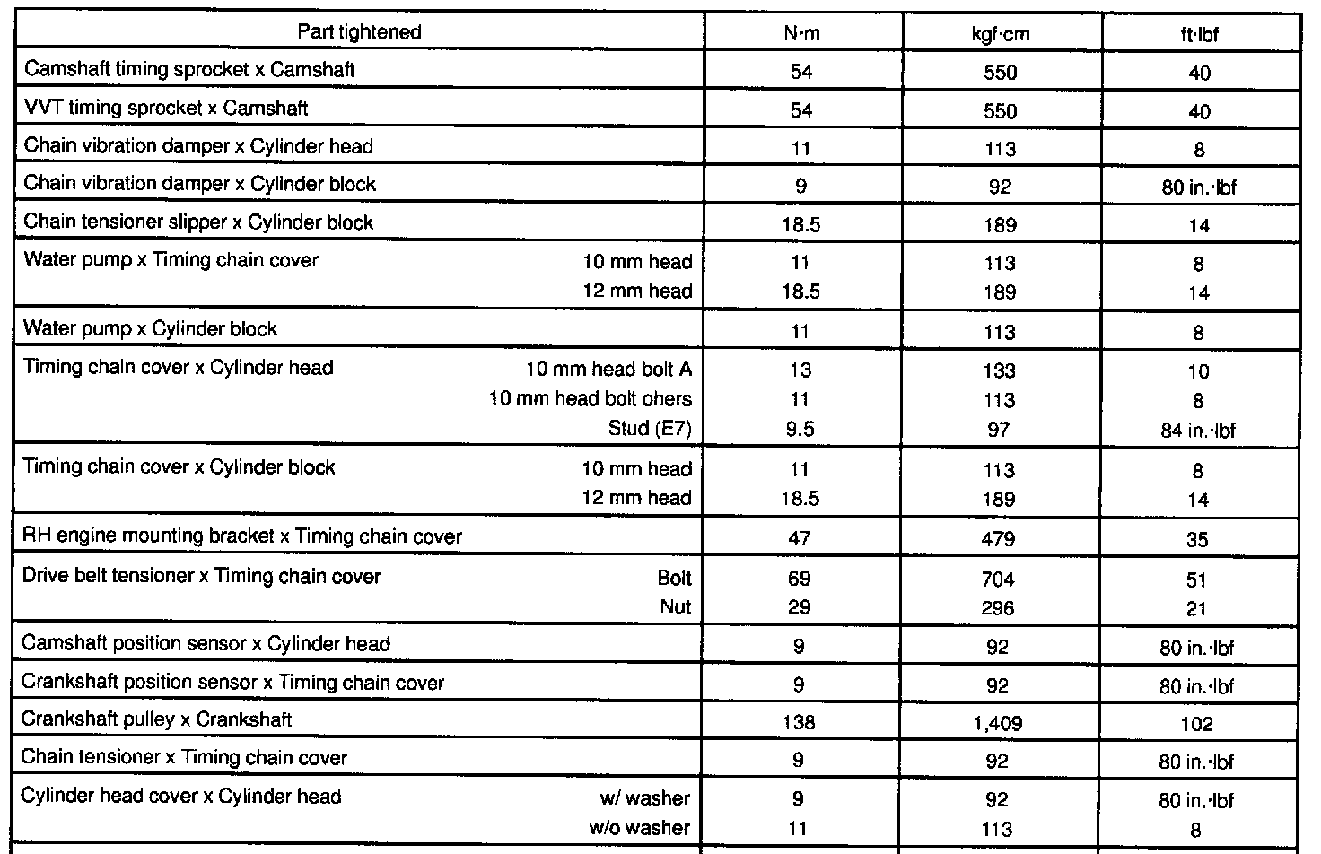 1ZZ-FE Cylinder Head Torque & Sequence: