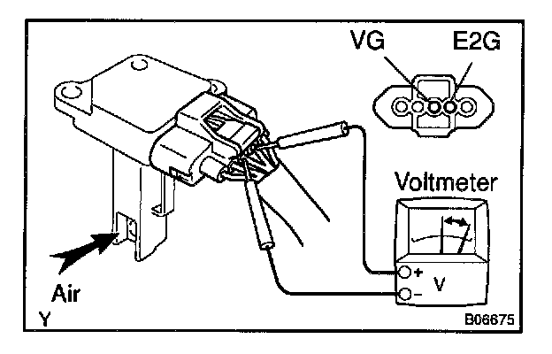 c. Using a voltmeter, connect the positive (+) tester probe to terminal VG, and negative (-) tester probe to terminal E2G.
