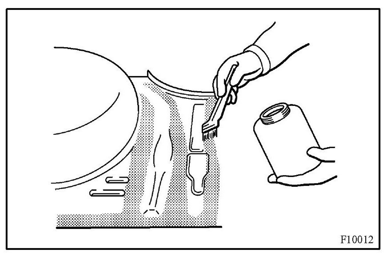 1. To prevent corrosion and protect the body from damage by flying stones, etc., apply anti-chipping paint to the rocker panel, wheel arch areas, valance panel, etc.