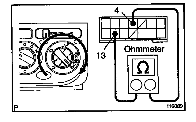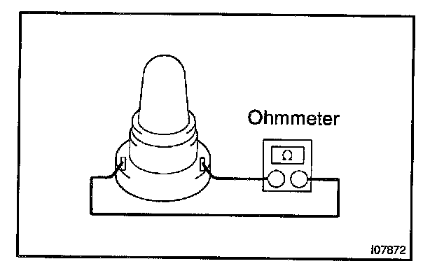 Using an ohmmeter, apply the tester as shown in the illustration to the test for continuity.