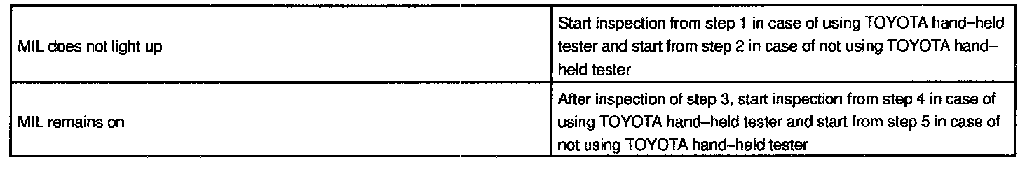 If the ECM detects trouble, the MIL lights up. At this time, the ECM records a DTC in memory.