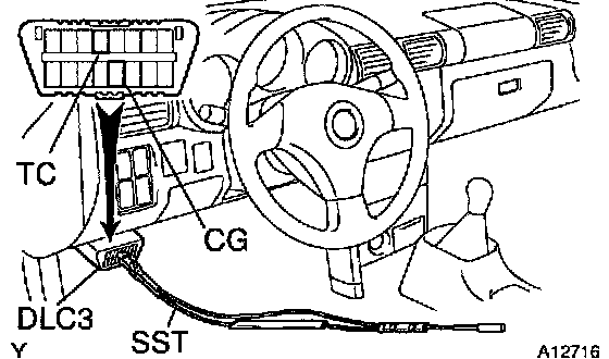 a) Using SST, connect terminals to TC and CG of the DLC3.