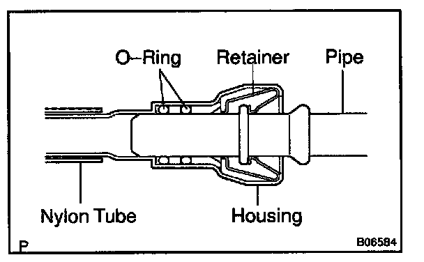 E. Observe these precautions when disconnecting the fuel tube connector (quick type).