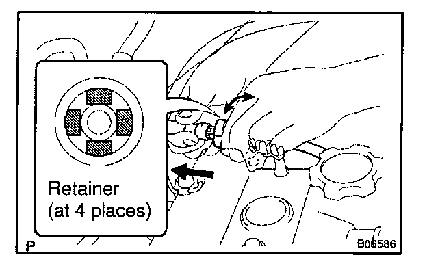 4. Match the axis of the connector with axis of the pipe, and push in the connector until retainer makes a "click" sound. In case that the connections is tight, apply little amount of new engine oil on the tip of the pipe.