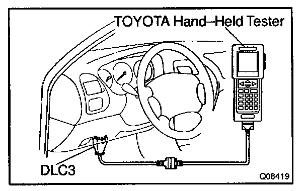 1. Connect the TOYOTA hand-held tester to the DLC3.