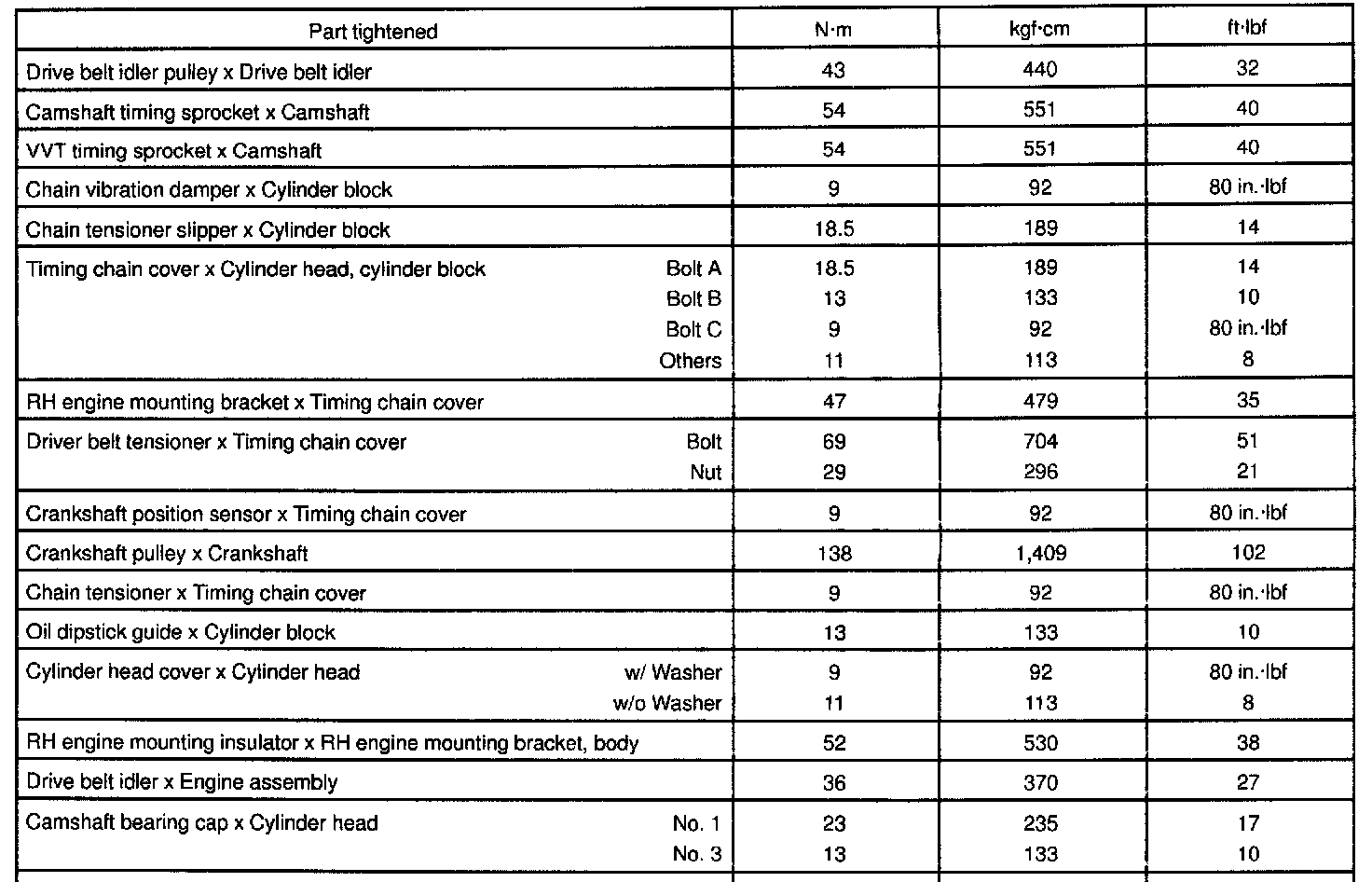 1ZZ-FE Cylinder Head Torque & Sequence: