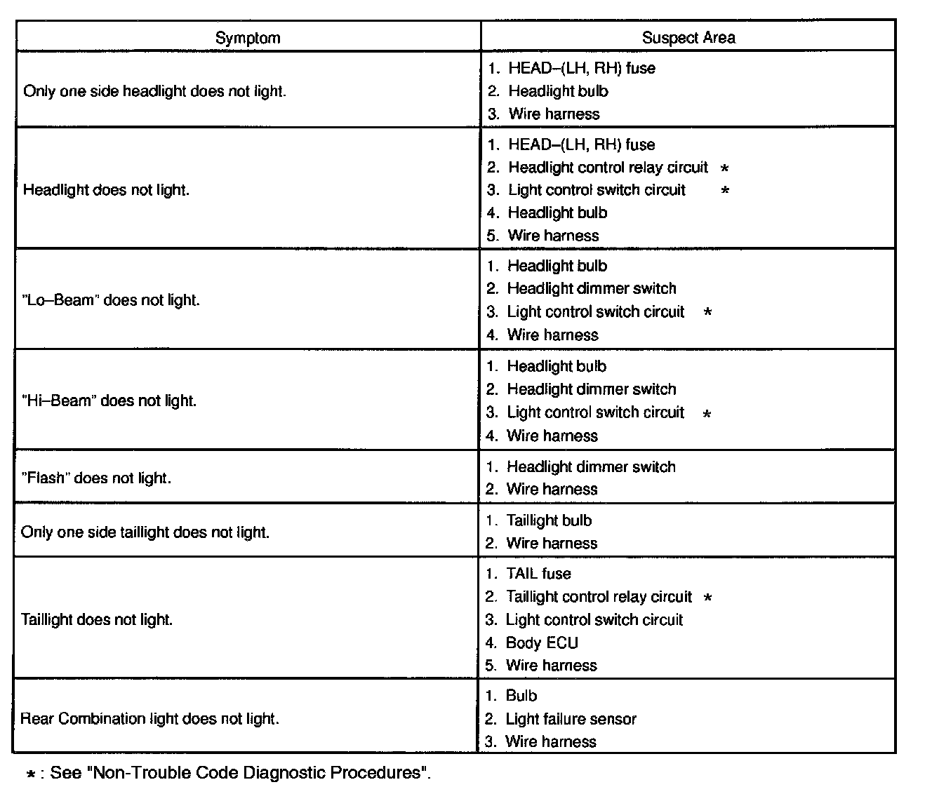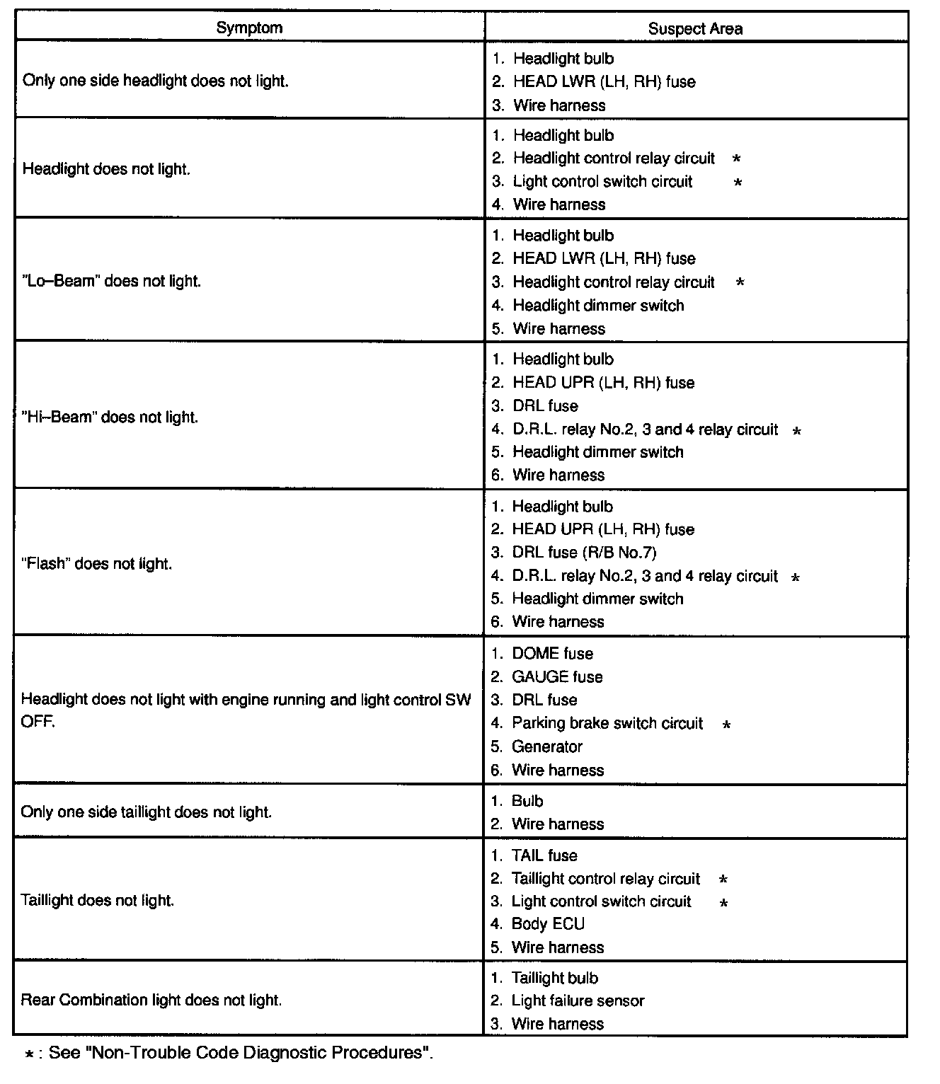 Problem Symptoms Table - Headlight And Taillight System (USA):
