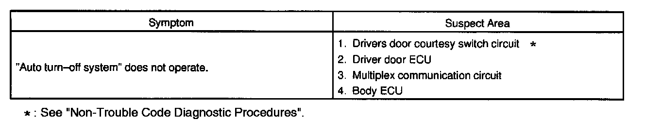 Problem Symptoms Table - Auto Turn Off System: