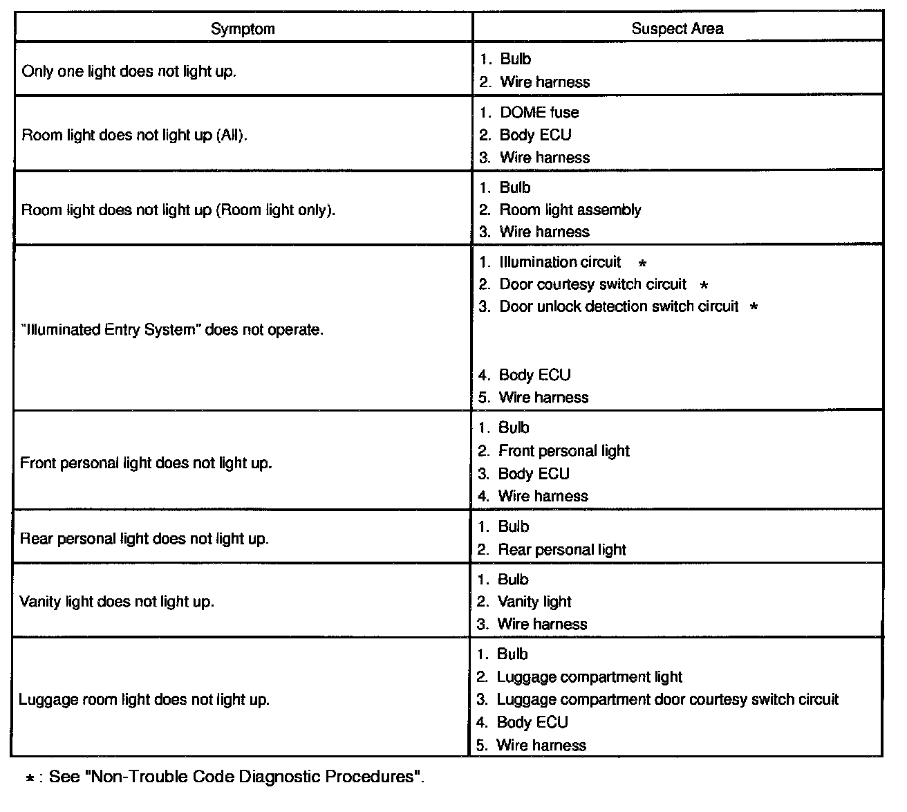 Problem Symptoms Table - Interior Light System: