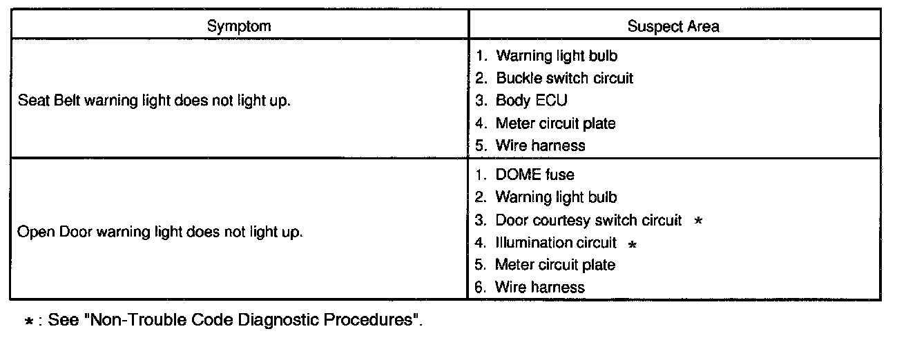 Problem Symptoms Table - Combination Meter: