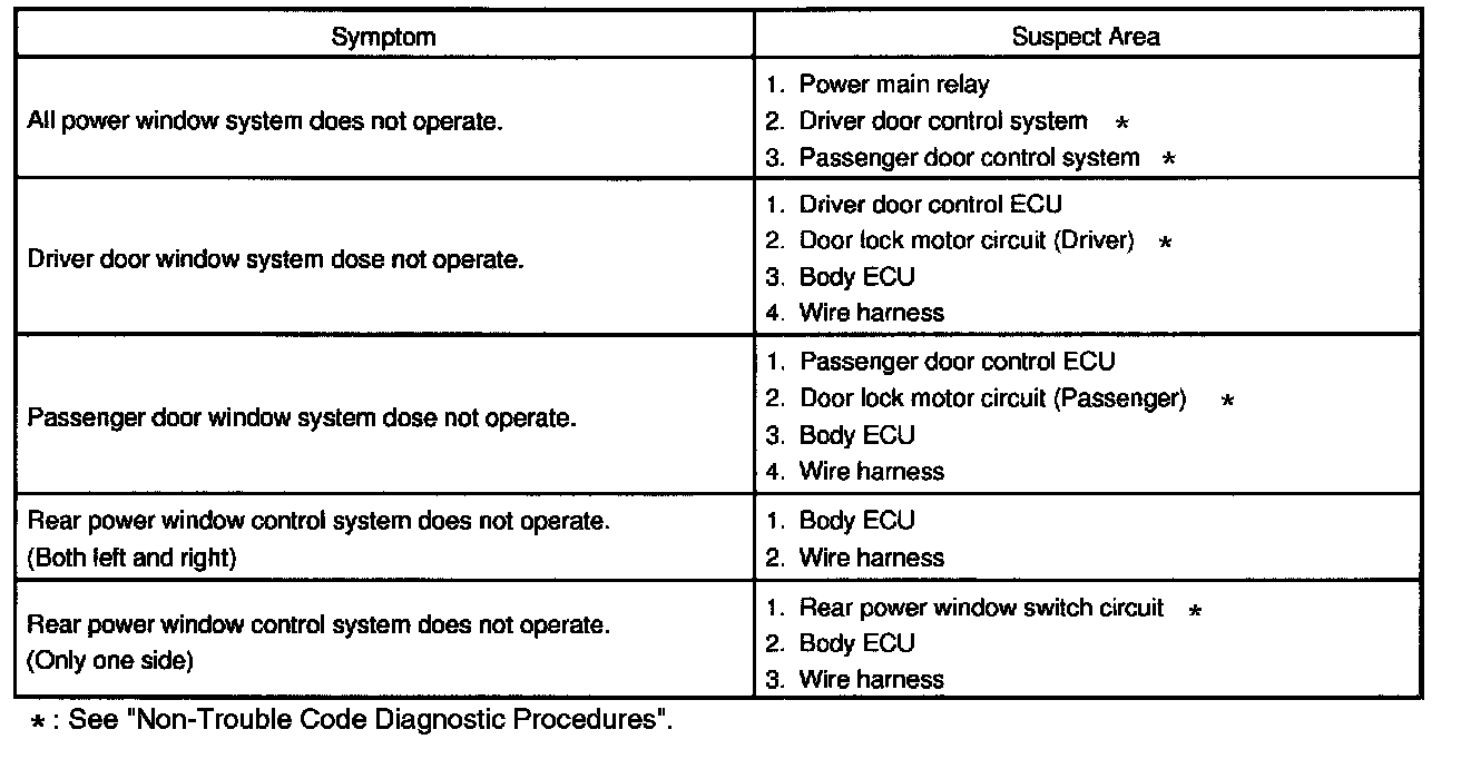 Problem Symptoms Table - Power Window Control System: