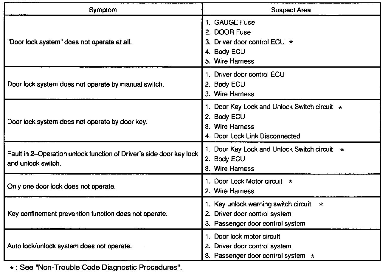 Problem Symptoms Table - Power Door Lock Control System: