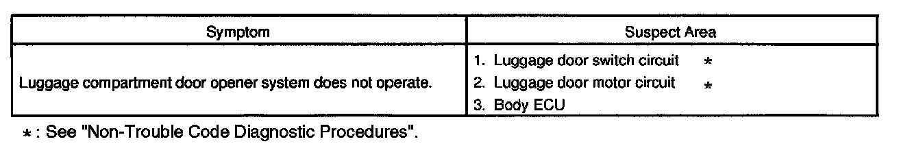 Problem Symptoms Table - Luggage Compartment Door Opener System: