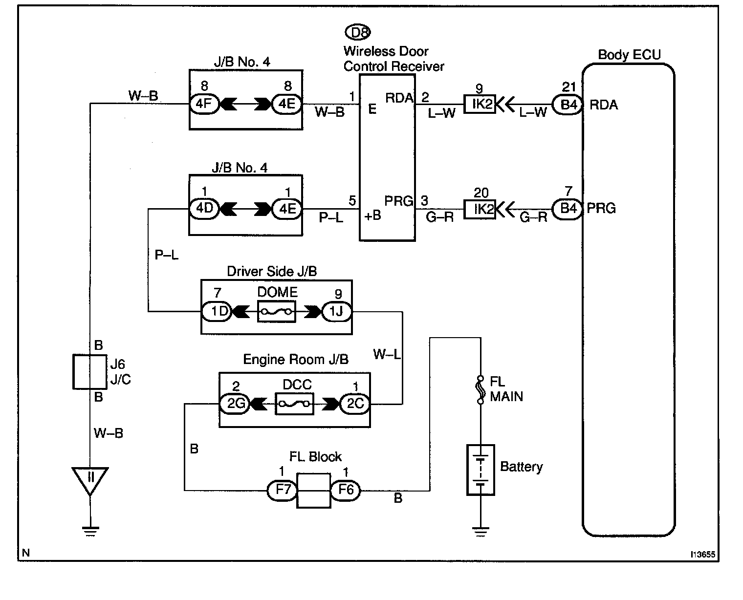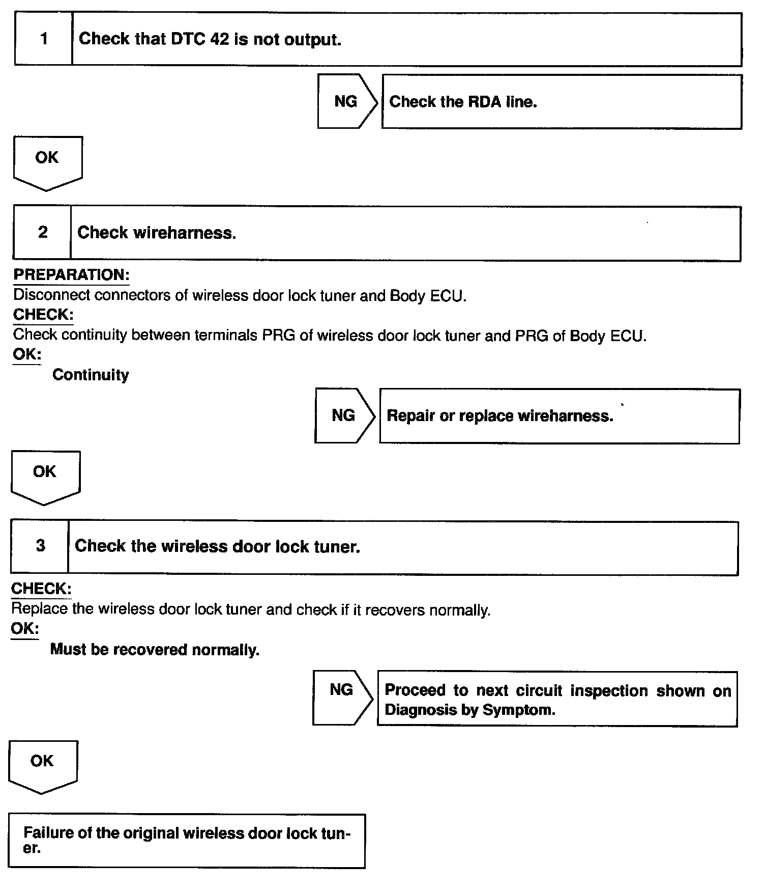 The signal from the transmitter will be input to the body ECU through RDA line. RDA line is diagnosed by the Body ECU, so check DTC also in case of the failure of the wireless function.