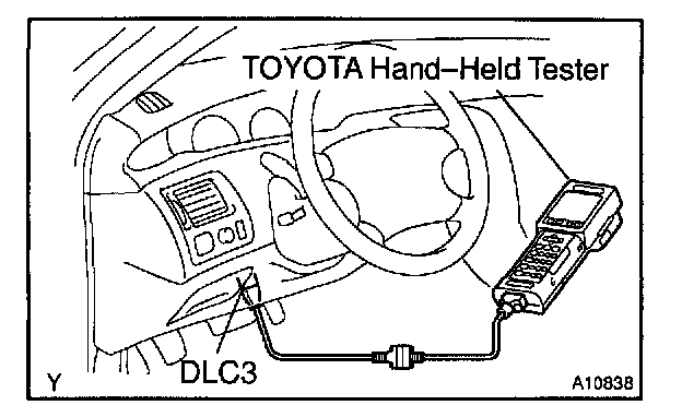 1. Connect a TOYOTA hand-held tester to the DLC3.