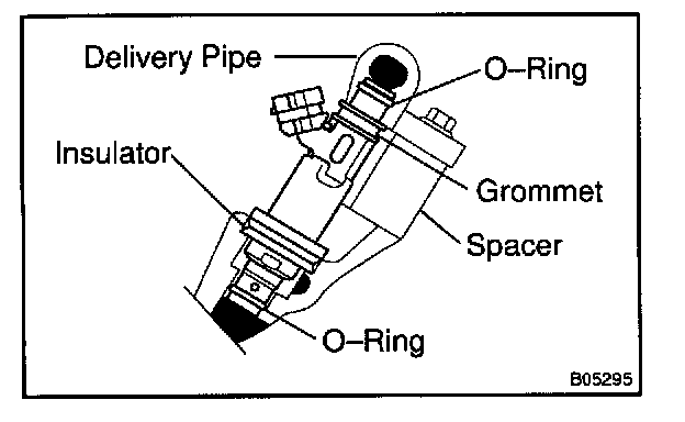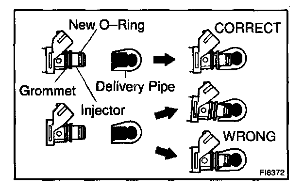 Before installing the injector, must apply spindle oil or gasoline on the place where a delivery pipe or an intake manifold touches an O-ring of the injector.
