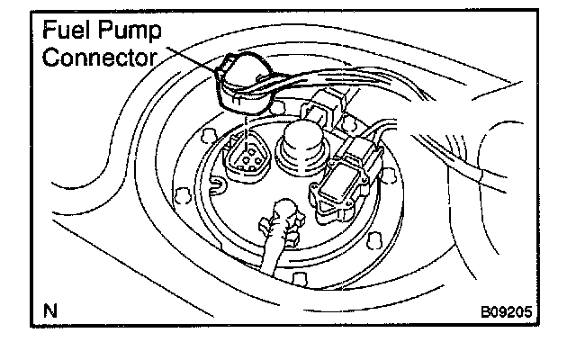 5. If you have no TOYOTA hand-held tester, connect the positive (+) and negative (-) leads from the battery to the fuel pump connector.