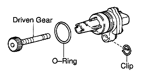 b. Install the driven gear to the vehicle speed sensor with the clip.