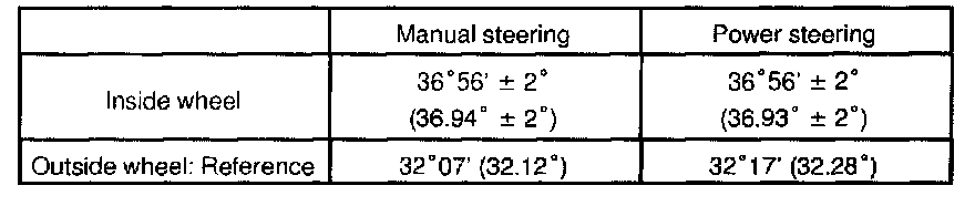Turn the steering wheel fully and measure the turning angle.