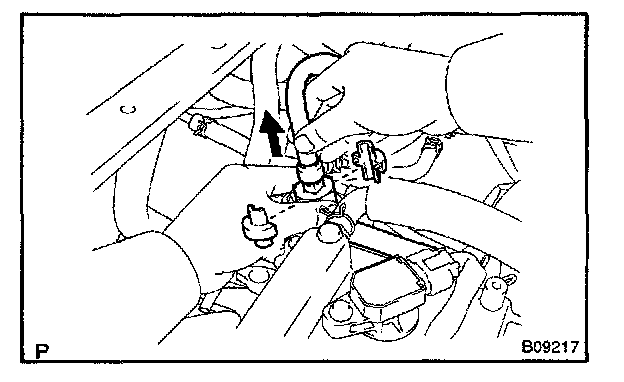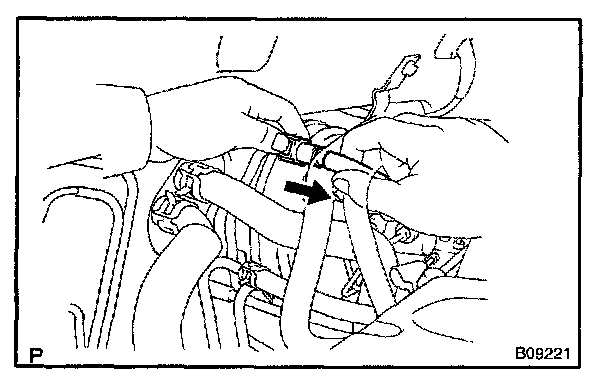 2. Get the metallic connector of the fuel tube assembly, pull it out towards the rear and hold it as it is.