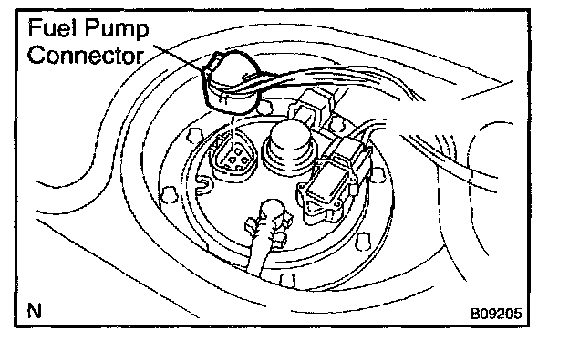 5. If you have no TOYOTA hand-held tester, connect the positive (+) and negative (-) leads from the battery to the fuel pump connector.