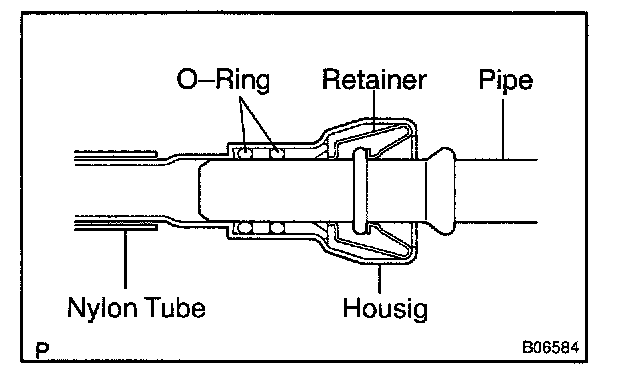 d. Observe these precautions when disconnecting the fuel delivery pipe. The structure of the metallic connector is shown.