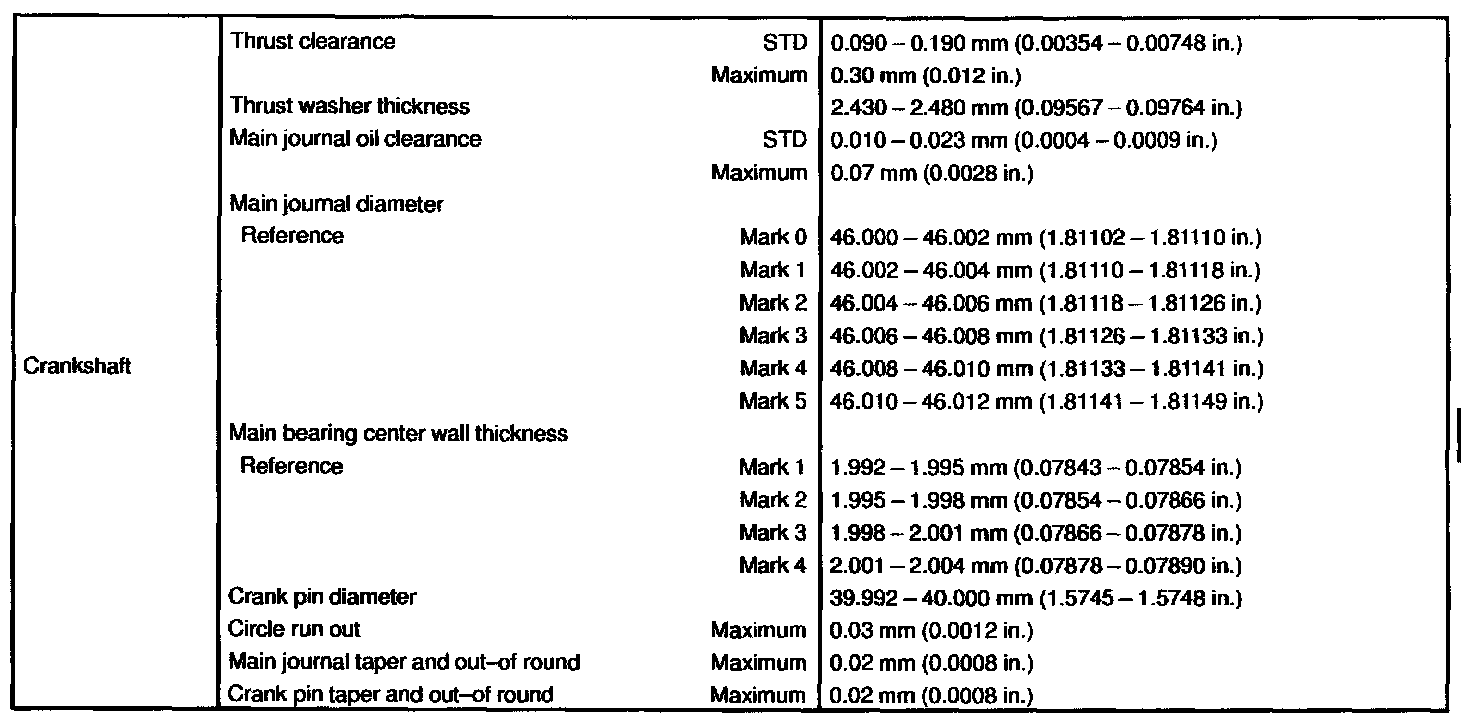 ENGINE MECHANICAL SERVICE DATA: