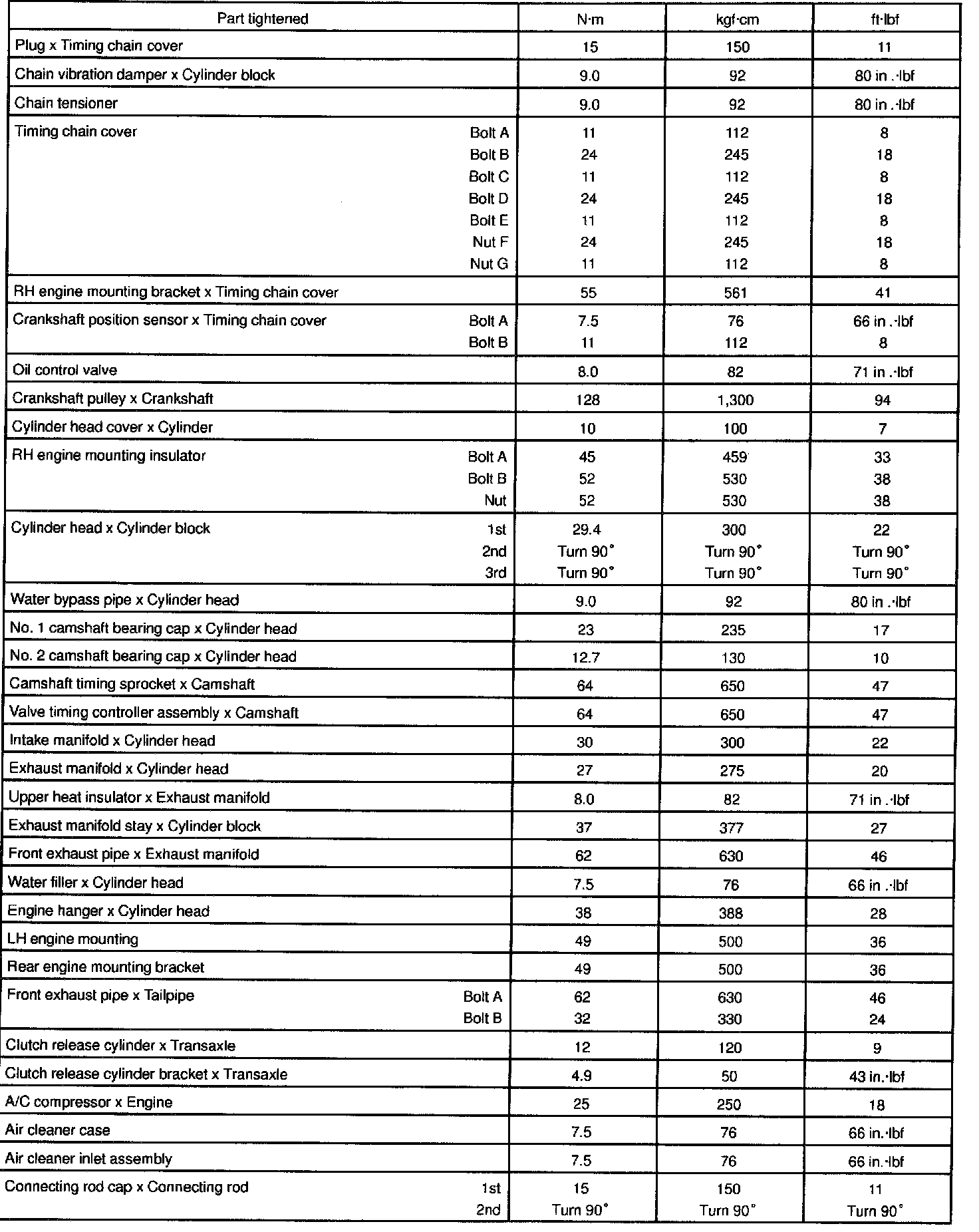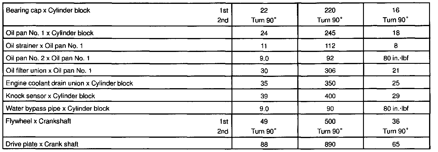 TORQUE SPECIFICATION: