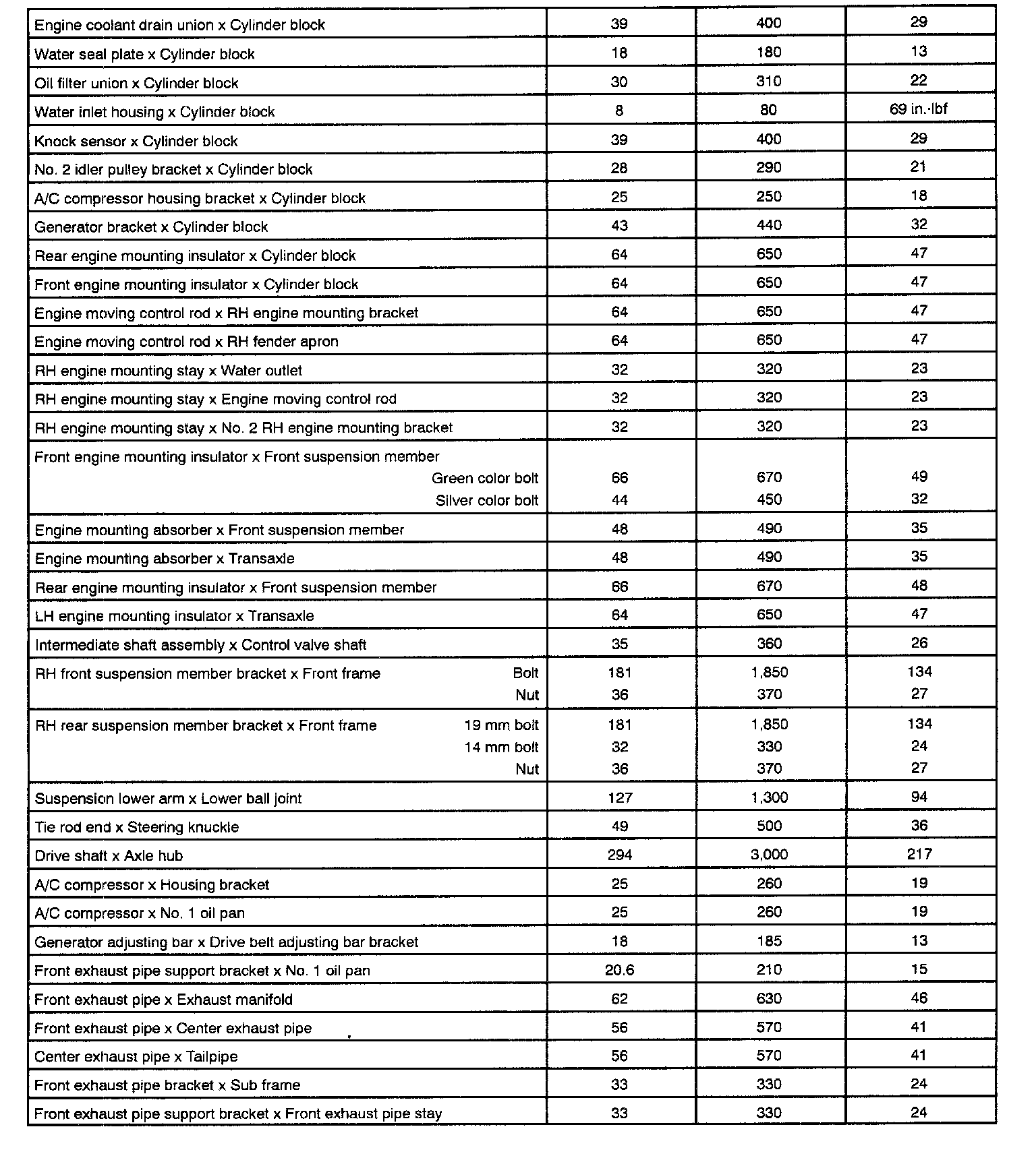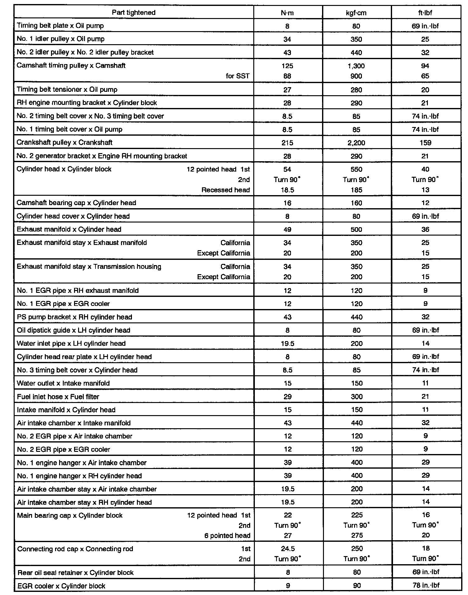 12 mm head: 19.5 Nm (200 kgf-cm, 14 ft. lbs.)