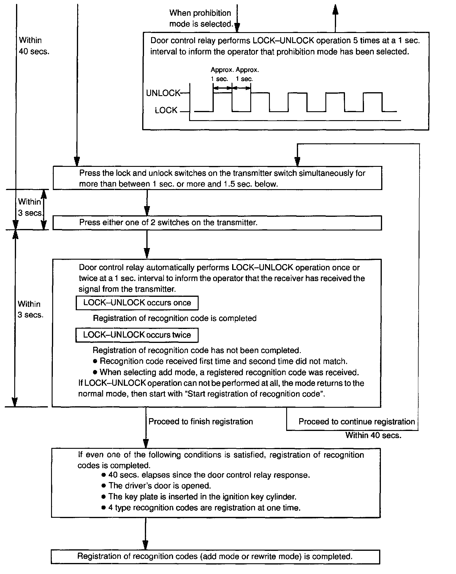 b. Follow the chart to register the transmitter recognition code at the wireless door lock control receiver.