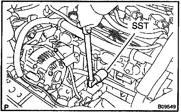 b. Using SST, remove the knock sensor.